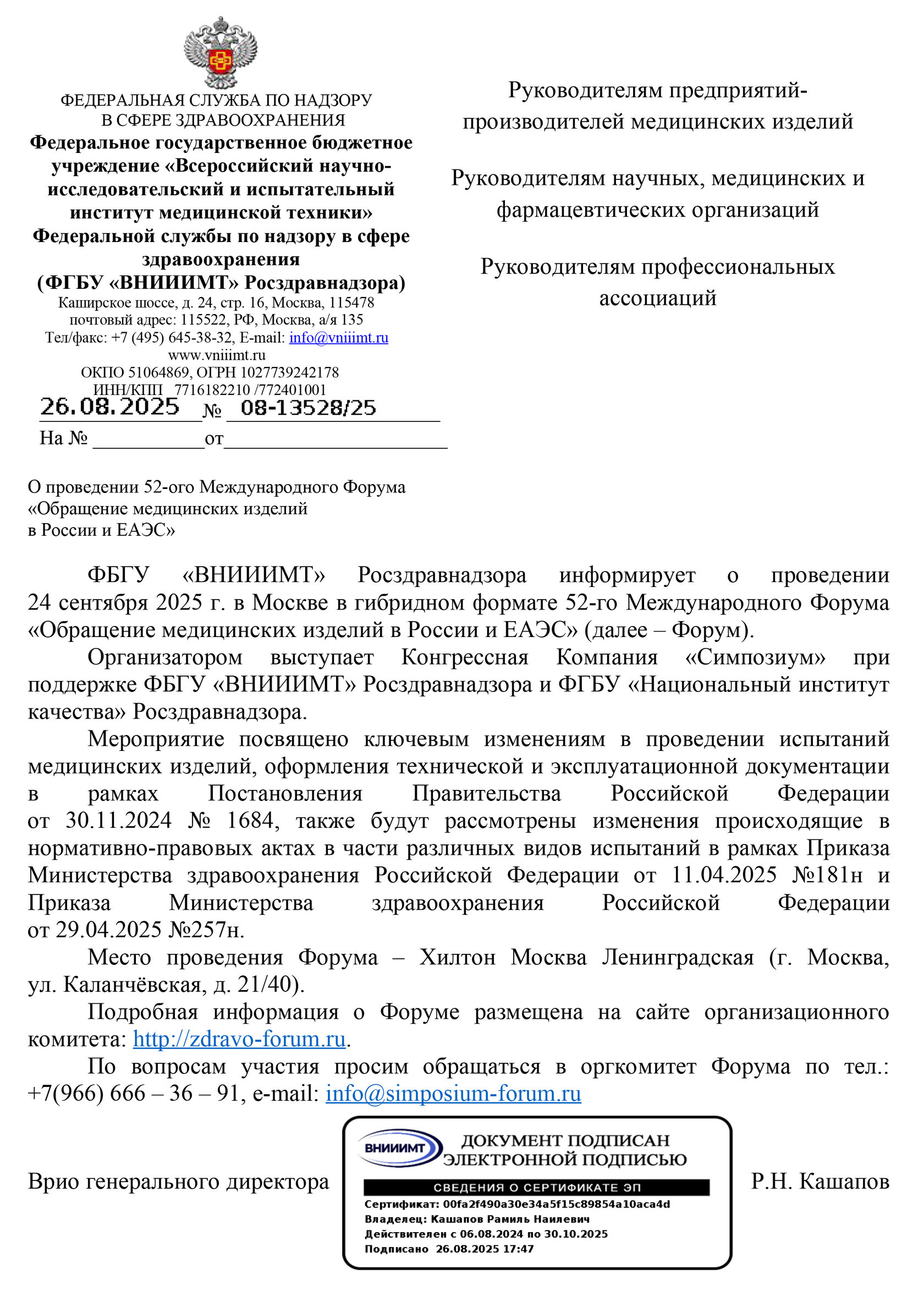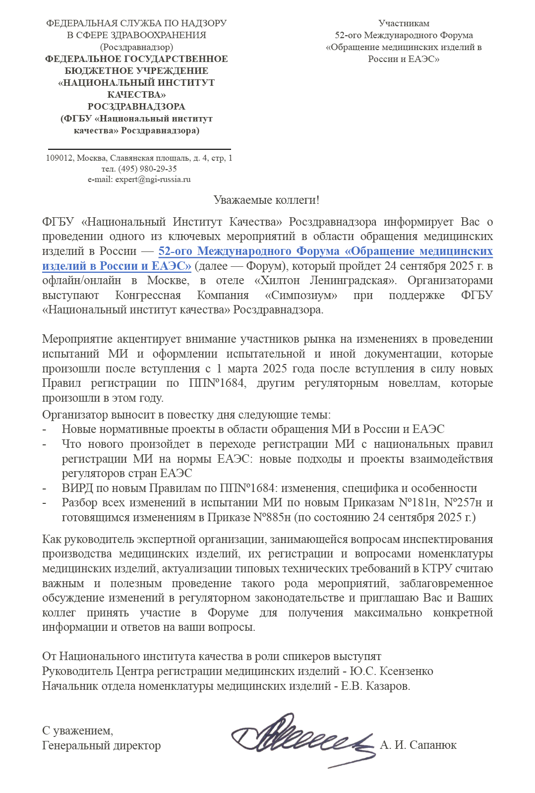 Генеральный директор, ФГБУ «ВНИИИМИТ» Росздравнадзора
